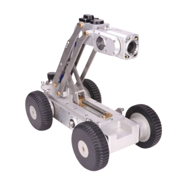 Son centre de gravité optimisé et ses roues biseautées garantissent une stabilité parfaite, même dans les canalisations les plus difficiles. Avec son chariot motorisé robuste, le 300 AX avance sans effort pour offrir une inspection fluide et maîtrisée.